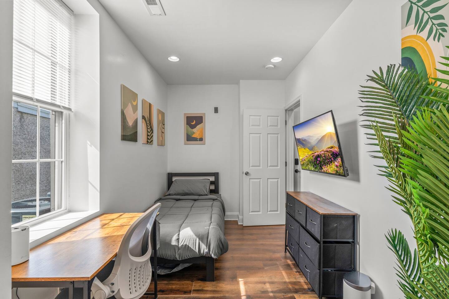 Welcome to our spacious and stylish 3-bedroom, 1-bathroom apartment located in the heart of Fairmount, Philadelphia. Situated near the renowned Art Museum and only minutes away from the vibrant Center City, this inviting apartment offers a comfortable stay for up to 8 people. With four cozy beds, there's plenty of room for everyone to unwind and relax. The smaller bedroom is located on the second floor, just near the entrance of the apartment. The other bedrooms and bathrooms are situated on the third floor. The apartment boasts a generous layout, providing ample space for families and groups. The tastefully decorated interiors create a welcoming atmosphere, perfect for enjoying quality time together. The family-friendly design ensures everyone feels right at home. Beyond the apartment's inviting ambiance, you'll find yourself in one of Philadelphia's best neighborhoods. Fairmount offers a wealth of attractions and activities, making it an ideal base for exploring the city. Take a leisurely stroll to the nearby Art Museum and immerse yourself in its world-class exhibits. Indulge in the vibrant culinary scene, with a wide array of restaurants, cafes, and bars just steps away. For those seeking to experience the buzz of downtown Philadelphia, Center City is conveniently close by. Explore the historic landmarks, visit upscale shops, or catch a live performance at one of the many theaters. With its central location, you'll have easy access to all the city has to offer. In summary, our 3-bedroom apartment in Fairmount Philly is the perfect choice for families or groups of up to 8 people. With its spacious layout, stylish decor, and family-friendly atmosphere, it guarantees a comfortable stay. And with its prime location near the Art Museum and minutes from Center City, you'll be immersed in one of the best neighborhoods in Philadelphia, ensuring an unforgettable experience filled with endless entertainment options.